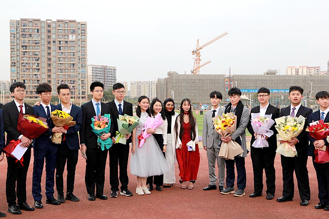 高三的学生们精心装扮,在学弟学妹们的欢呼掌声和老师们期许的目光中,挽着父母一步一步昂首挺胸地走过成人门。手捧鲜花的他们,带着父母、师友们的祝福,成为这条红毯上最亮眼的风景线。