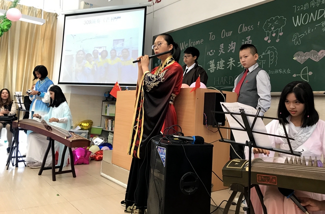 对于迈进新学部起始年级的学生,黄广学校安排年级拟定相关主题,为学生创造向父母展现自我、素质成长的班级平台,让百忙中抽空前来的家长参与由孩子们自主组织的班级汇演,欣赏一个个经学生自编自导的文艺小节目,见证孩子们入读黄广学校以来的步步提升,感受学生们朝气蓬勃、元气满满的精神力量,并在师生引导下倾听孩子满怀感恩、追逐梦想、憧憬未来的肺腑之言,同时也与子女进行心扉开敞的心声传递,大大拉近与孩子之间的距离。