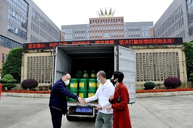 从新冠状病毒疫情蔓延至今得到一定程度控制,广州市黄广中学一直依照国家及上级部门的各项指示,为师生随时回归校园进行全方位的准备,各项工作得到来自家长的关注及认可,家长们也纷纷以实际行动就校园防疫体系的有效运作提供强大助力,围绕“全面保障学生健康安全”核心,齐心协力创建家校防疫防控统一战线。近日,黄广学校再次获得来自学生家长的爱心捐赠——七(10)班许启祥家长许波先生特向学校输送2吨84消毒液。