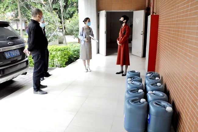 八(2)班周姿颖爸爸特向学校捐赠75%乙醇消毒液2700瓶,洗手液360瓶。