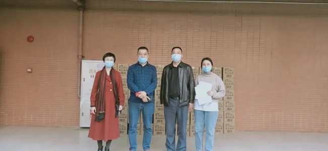 高二(2)班曾玥涛同学家长也向学校捐送1000个口罩及60支消毒酒精。