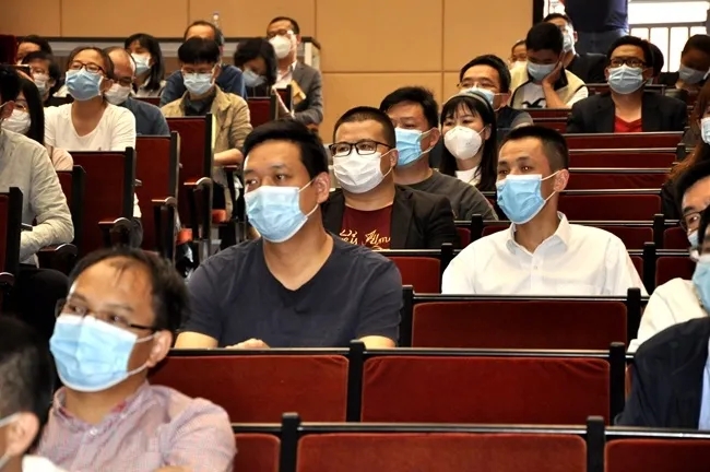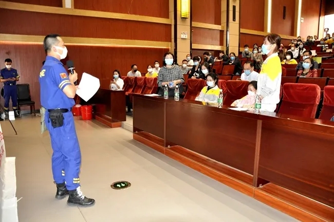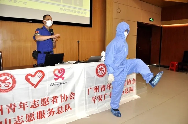 南山志愿服务队、平安广州志愿服务总队及广州市青创力社会发展中心派出代表莅临访校,立足于物资储备、个人防护、消杀技术及应急流程,为与会领导及教职工展开校园防疫工作执行的主题培训,向一线及后勤的教育管理工作人员讲解防范病毒、疫情控制的科学方法,并即场指导把关实境演练的每一流程步骤,与老师们展开探讨与交流,为老师们的日常防疫管理提供调整建议与疑惑解答。