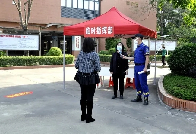 为全面迎接4、5月分批返校的学生,深入落实师生回归校园的疫情防控工作,着眼于疫情防控、安全保障等核心为师生打造校园运作机制体系,广州市黄广中学于4月15日组织开展了覆盖校园日常全流程的疫情防控应急&开学演练。