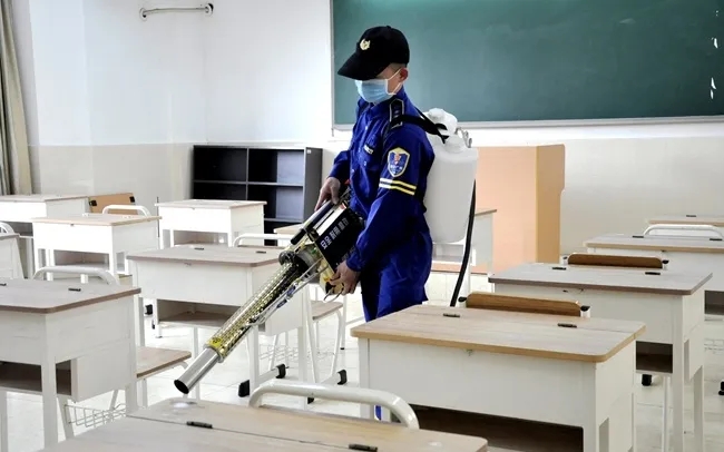 在教学区,必须早、中、晚三次测温登记,学生座位尽量保留1米间隔,课室空气保持流通。