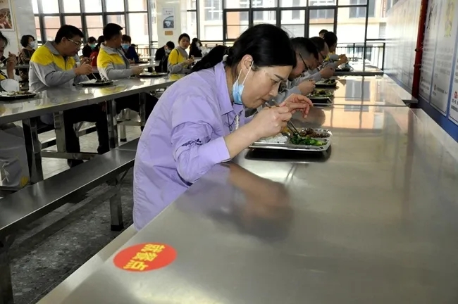 “学生”在保持间距的前提下有序排队取餐,按指定位置进餐,面向同一个方向,进餐时才脱除口罩,饭后起身前戴好口罩离开,就餐过程中必须做到不聚集、不交谈。