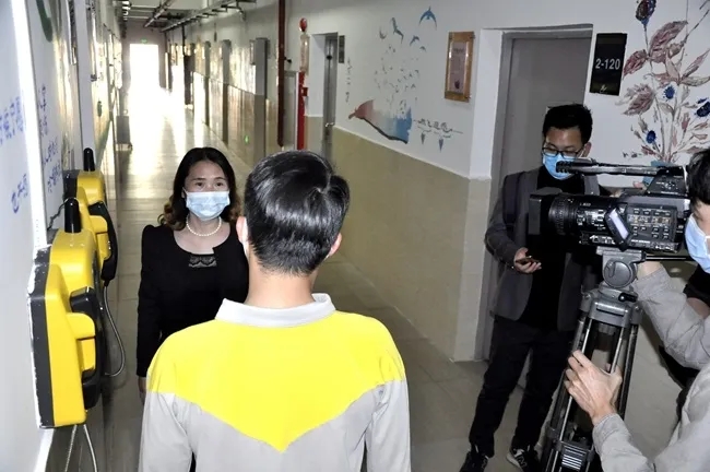 搬到备用房间的学生接受心理辅导老师介入疏解,解除恐慌情绪。