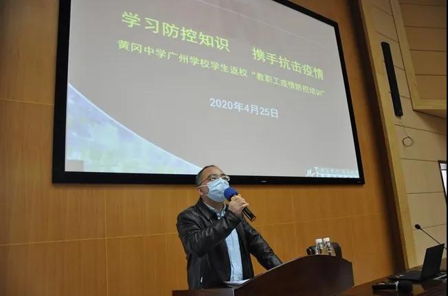 特别值得一提的是,清布社区卫生服务中心万友根副主任及张少莲医生,分别由上级部门指派担任学校兼职的卫生副校长及卫生指导员(驻点医生),专门出席本次培训会,作为防疫专业讲师,从新型冠状病毒肺炎临床症状、传播途径以及校园病毒防控消杀要点、各部门应对方式、心理危机干预等方面,为现场领导及教师作权威级的讲解普及,并就黄广学校现行的防疫体系作出客观评价及细节指导,助力学校进一步优化升级疫情防控机制。