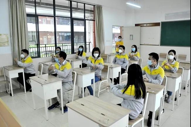在阶梯教室(东)中,黄广学校特别组织已返校的初三、高三教学团队及常驻校园的行政后勤成员,举办以“学习防控知识,携手抗击疫情”为核心的开学工作&防疫培训大会,围绕校园防疫系列重点措施、特殊运作、应急防范展开知识传授、经验分享及疑惑探讨,协助学校教师对新冠病毒传播感染及有效防御的相关知识进一步加深了解,将防疫防控、保护学生的意识认知深入贯彻到常规教学、学生管理当中。