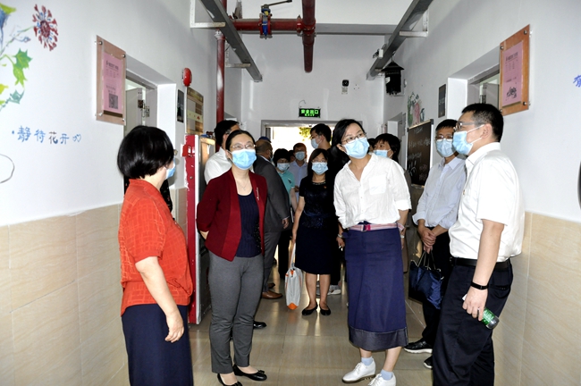 我校梁润佳董事长、游烈峰校董、范小星校长等向陈爽局长、邢翔区长一行汇报了学校疫情防控和学生返校情况,并陪同考察校园疫情防控的主要区域。