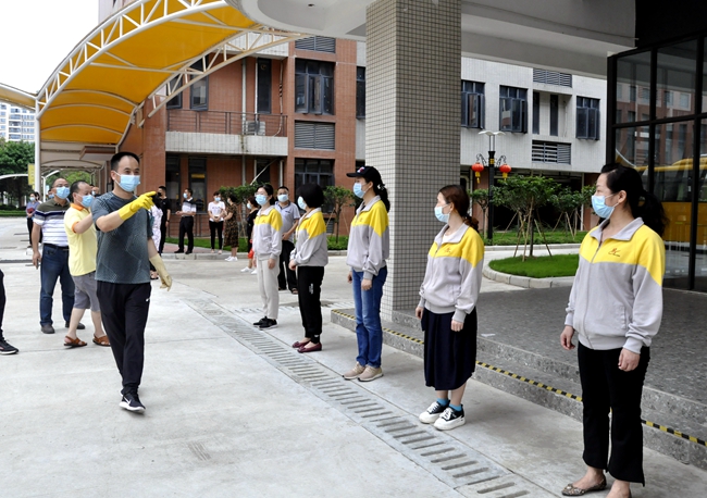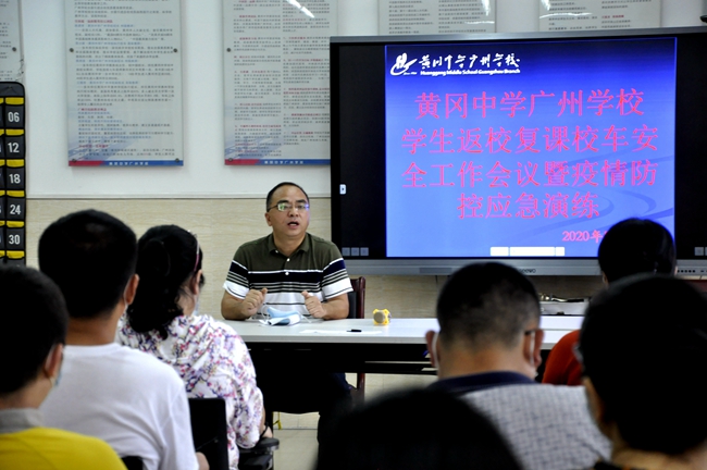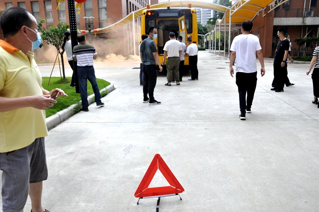 为了进一步完善校园新冠肺炎疫情防控,让校园疫情防护网高度覆盖师生日常的方方面面,尤其针对学生周末离校返家的系列场景,针对性加强校车接送服务&应急管理,进一步升级面向学生进行的安全知识宣传和教育,促使学校司机、随车管理员掌握新冠肺炎的防范法则,提升老师们面对突发安全状况的临场应变能力,广州市黄广中学于5月20日策划组织了以“疫情防控”+“应急处置”为核心的校车接送实操演练。