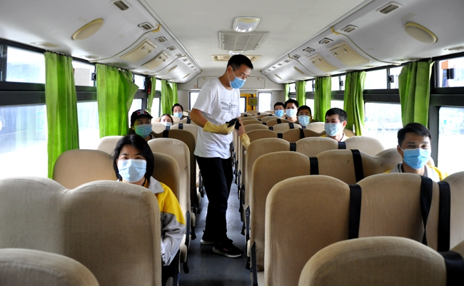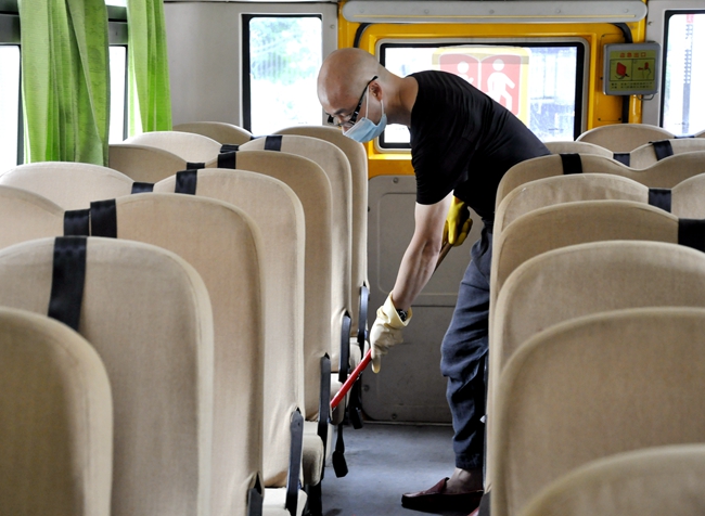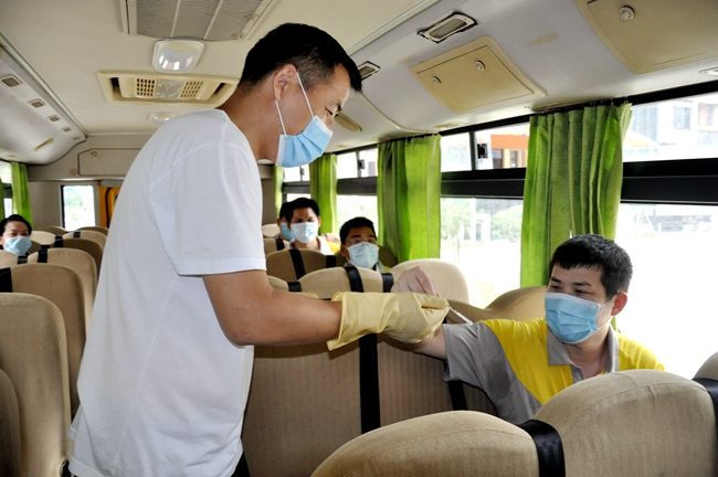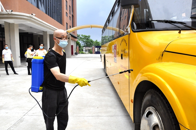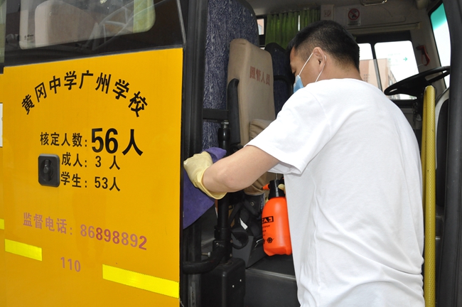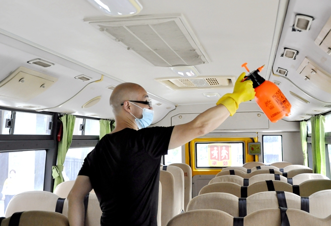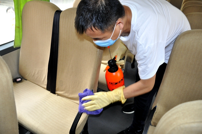 获准执行出车任务后,随车管理员必须打开车门窗,通风透气,司机也需按消毒标准对校车内的重点位置和学生容易接触到之处进行消毒。