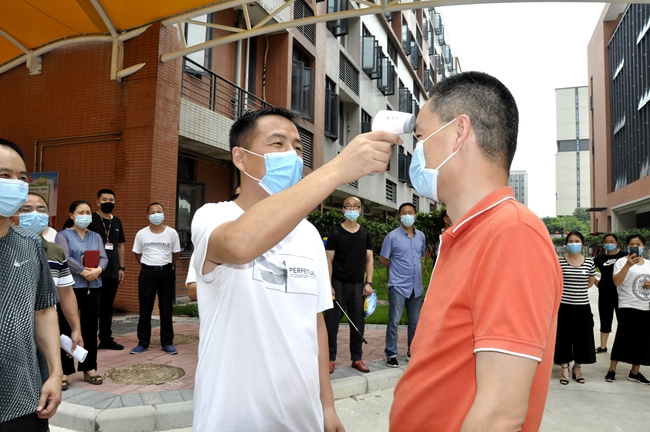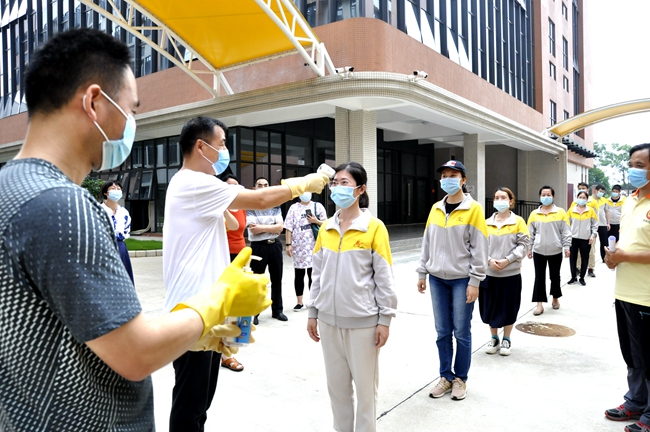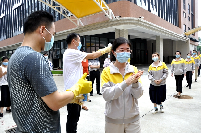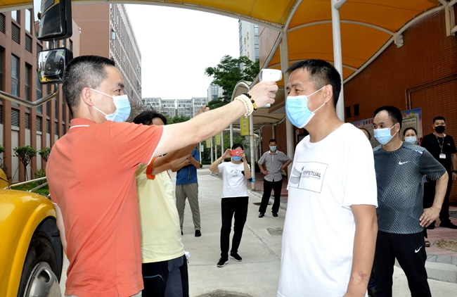 校车出发前,由学校司机、随车管理员均测量体温,确认体温正常后方可上车。