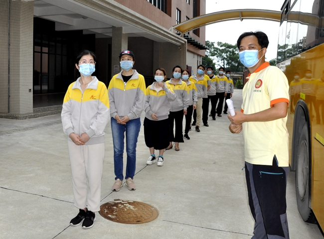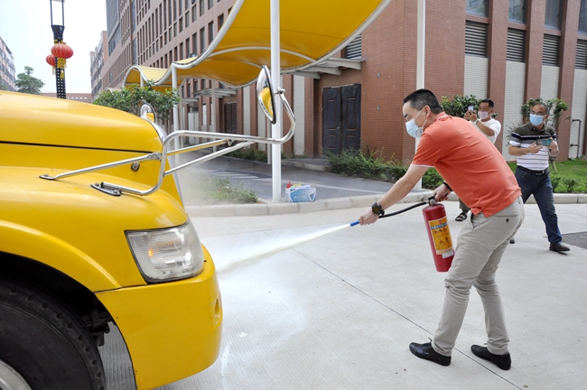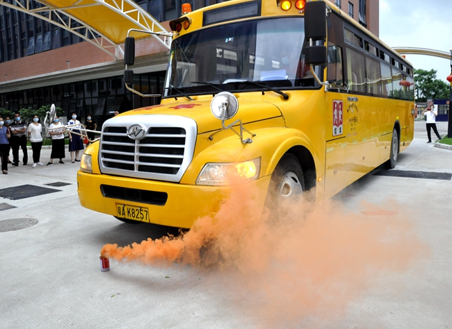 根据黄广学校往常周末及节假日校车接送服务的实际情况,按照上级部门对防疫期间校车接送管理提出的系列操作指引及落实标准,学校在珠航校车公司特派专家的协助下设置多个状况场景,从出车前、接送中到接送后以及突发意外等,学校针对学生离校返校中途可能发生的所有情况开展“体验式”演练,推动司机和随车管理员进一步清楚自身在学生接送过程中分别承担的职责与任务,掌握保障学生在疫情期间可安全离校、健康回校的“必学技能”。