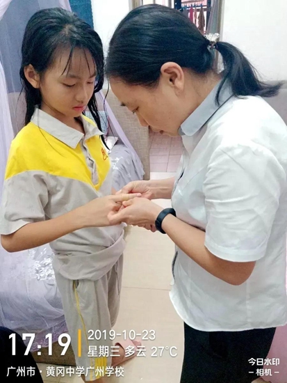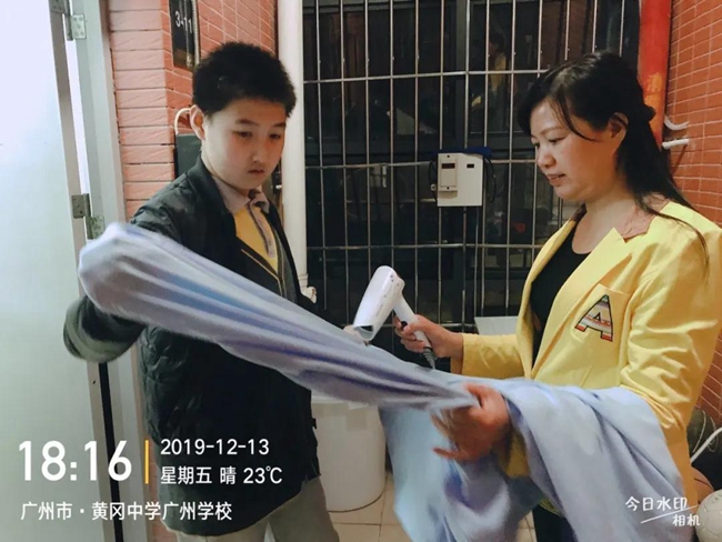 在寄宿生活的常规管理中,黄广生活老师用心爱护、暖心关怀,为学生提供及时而温暖的关爱与帮助,密切注视学生日常言行的细微变化,重视学生身心健康发展;
