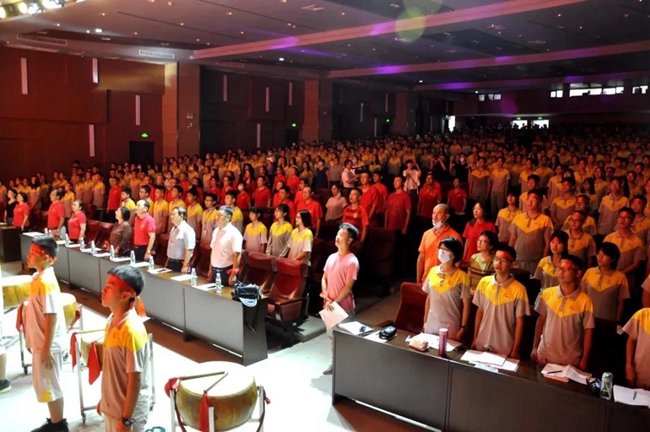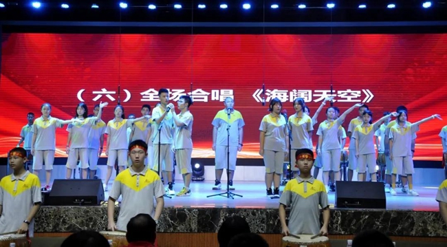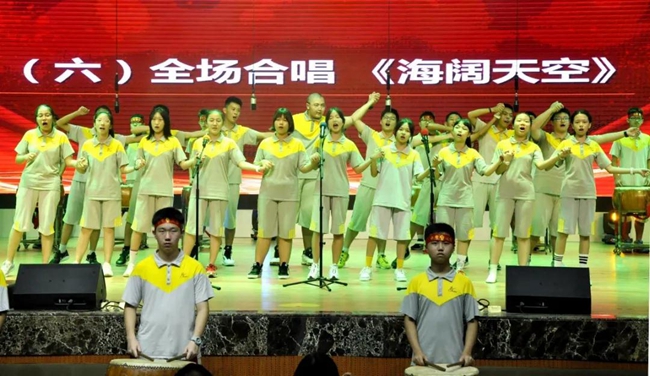 拼搏到底的誓言青春迸发、掷地有声,初二学弟学妹也特别以歌声送祝福,为纵横理想战场、全力冲锋陷阵的初三斗士们呐喊高歌,一首《海阔天空》引起现场师生强烈共鸣。