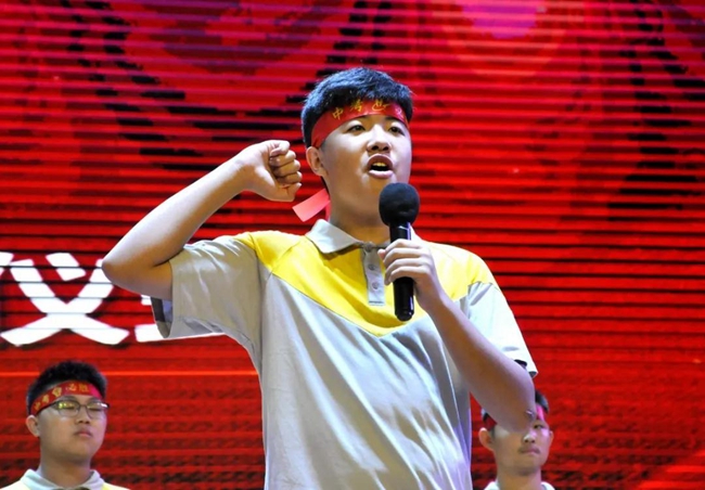 由林同学指引,同学们一同举起右拳,向学校、向未来,以青春的名义庄严宣誓----“不负天赐的智慧,不负青春的理想,不负父母的期待,不负恩师的厚望,用勤奋踏过书山,用严谨规避失误,用信心战胜困难,用高效夺得高分,用实干追逐梦想,用奋斗赢得幸福。拼搏奋斗战五周,洪荒之力夺桂冠,让父母为我骄傲,让母校为我自豪。2020我们注定成功,2020我们必创辉煌!”