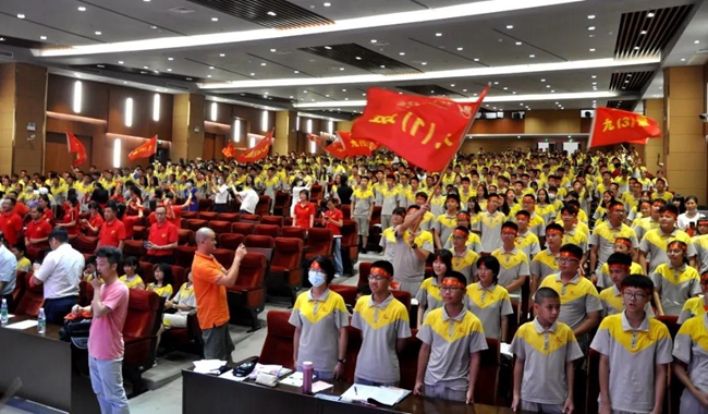 6月16日,黄广学校2020年中考出征仪式隆重开幕。学校范小星执行校长、杨文化副校长携各位主任,共同出席本次冲刺仪式,与现场的家长代表、各年级师生一起为即将迎接挑战的中考学子加油鼓劲。