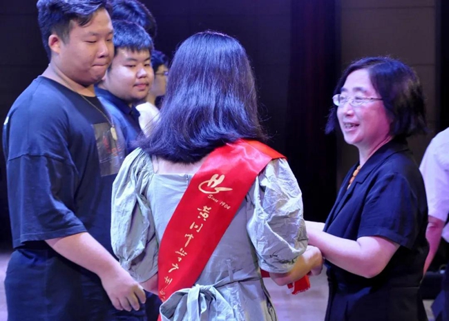 范小星校长、孙传华副校长、叶青副校长特别为各班毕业生代表颁发纪念册。