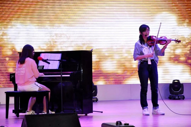 高三器乐表演《我心永恒》、《我可以忘记你》,流畅而悠扬的乐曲演奏吸引现场观众全心感受;