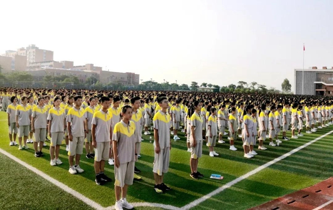 2020年9月1日,广州市黄广中学黄广)2020-2021学年第一学期开学典礼正式拉开帷幕,各年级师生汇聚,共同参与本学期第一次全校师生大型集合。