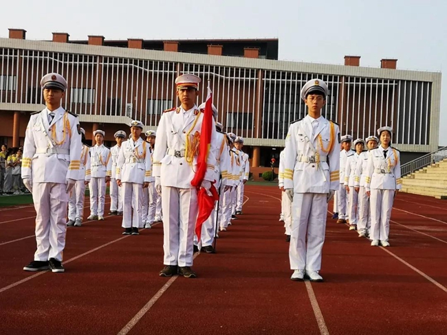 标准的起步、沉稳的正步、挺立的身姿、凌厉的眼神……护旗手们为现场学子充分展现着当代青少年的向阳生长的飞扬神采、朝气勃发的自信风貌。