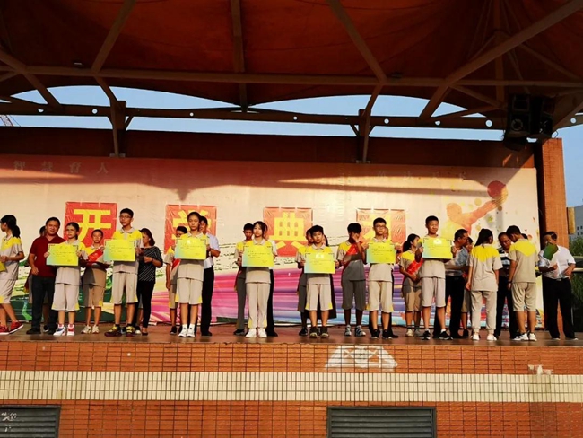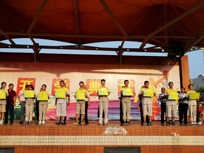 经过严格的审核评比,新一批成绩优异、全面发展的“明星班级”“明星学子”又再诞生——校领导先后向获认证授予“花都区先进班集体”“花都区优秀学生”荣誉称号的班级、同学进行公开表扬,并向通过校园师生系列考评审核的20个优秀班级及1463位学习之星、全面发展之星、管理之星、学习进步之星、德育之星、德育进步之星、各类特长之星、优秀团员、优秀团干部等进行表彰。