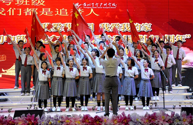 为热烈庆祝中华人民共和国建国71周年,以“活动育人”的方式创新开展“立德树人”工作,广州市黄广中学日连续举办以“我爱我的国,我爱我的家”&“歌唱祖国,圆梦中华”为双主题的年级专场学生合唱比赛。