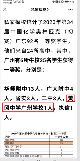 对此,关注此项比赛的教育专业媒体评价为,广州市黄广中学,连续两年都有学生获得一等奖,位列广州竞赛“六大牛校”之一(另五所为:华附、省实、二中、广大附中、执信),成功跻身传统名校的“竞赛俱乐部”。
