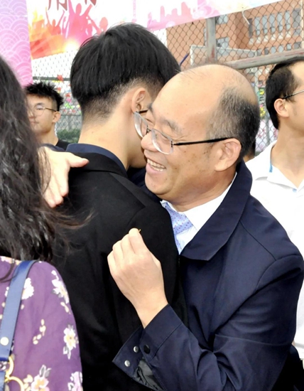 范小星执行校长、孙传华副校长等领导联同高三教师队伍早早集中在成人红毯周边,准备亲自为今天的主角们佩戴上金色勋章,向步入成年人行列的每一位学子送上热情诚挚的鼓励和祝福。