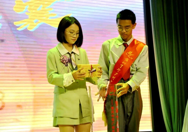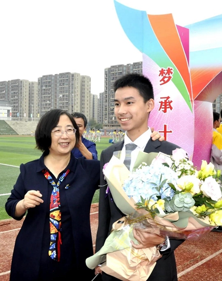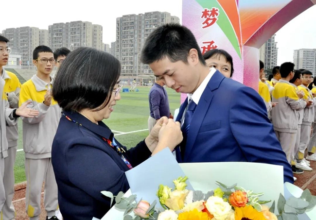 高三学生代表、来自清北班邓昊同学以“感念十八载恩情,树立报效家国之壮志”为题,向在场高三学子发出倡导,号召高三学子在思考“成人”意义的过程中,要珍惜时间、全力以赴、踏实奋进,勇敢承担起身为父母子女、作为祖国国民的重要担当与未来责任,他充满希望与憧憬的成长心声引起共鸣。