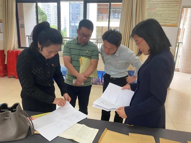 共青团花都区委陈得部长、教育团工委许卫珍书记及范小星校长、杨文化副校长等陪同来宾仔细查阅了黄广学校团建档案资料,来宾们对学校团委工作规范化建设给予好评,并提出具体指导意见。