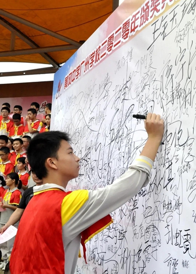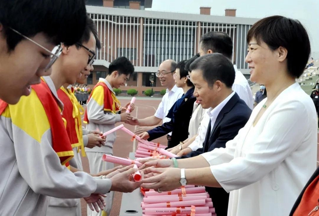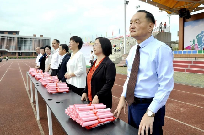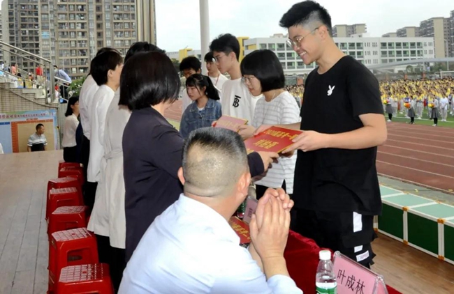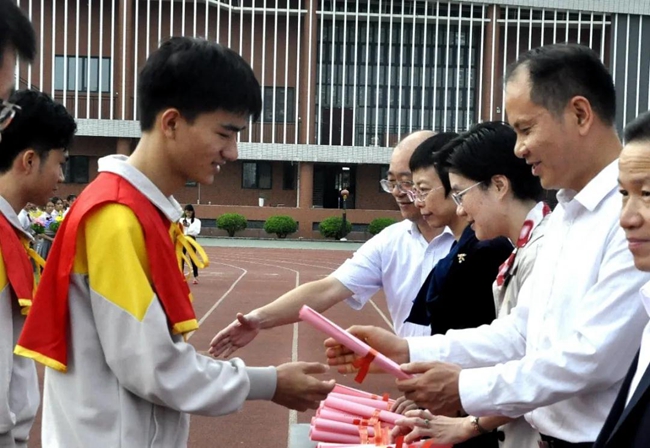 同时,按照《花都区教育基金会2020届高考优秀生表彰决定》,花都区教育基金会姚壮文副理事长现场宣读获奖名单,特向获双一流、985大学录取的黄广2020届高三优秀毕业生颁发奖励。