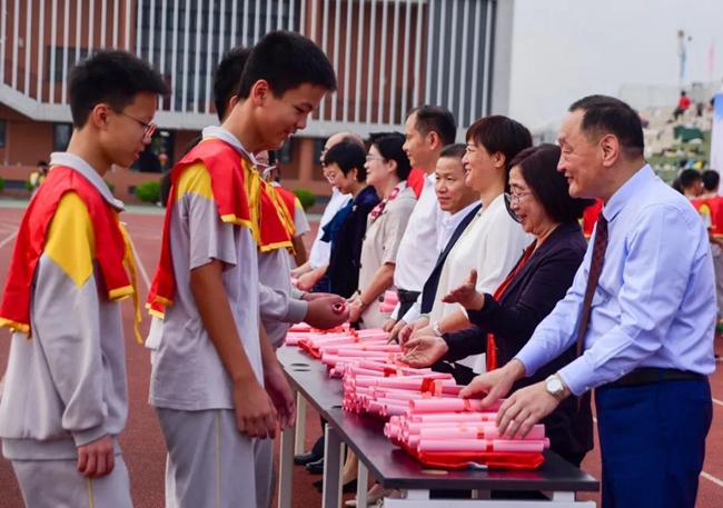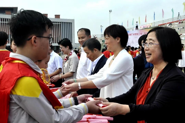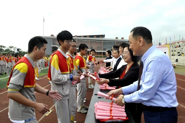 花都区教育局梁国洲副局长莅临学校,以“祝贺、感恩、奋斗”三大关键词,勉励同学们怀着感恩的心奋斗不止,以实际行动践行社会主义未来接班人、建设者的义务与责任。