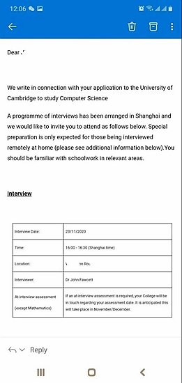 【剑桥你好】黄广两名同学获剑桥大学面试邀请