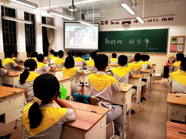 广州市黄广中学知要求,全面组织学生利用晚自习时间观看节目,并以此为契机,围绕“扣好人生第一粒扣子”“新时代好少年”等主题引导学生放开思路、踊跃探讨,鼓励学生从不同角度反思自我、思考未来,帮助学生树立“争当好少年”的奋斗信念与成长目标。