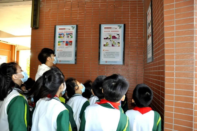 专家讲座前,先后抵达黄广的外校师生队伍陆续步入校园专门设立的法治知识宣传区域,长廊上涵盖不同话题、涉及多方焦点的法治常识普及展板吸引着访校师生的驻足阅读。