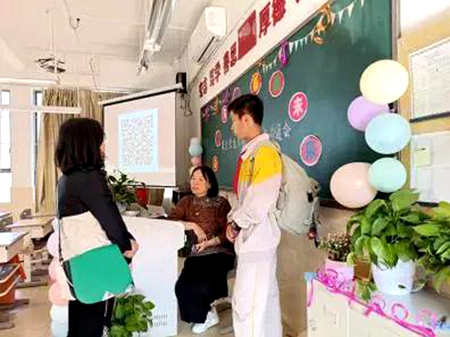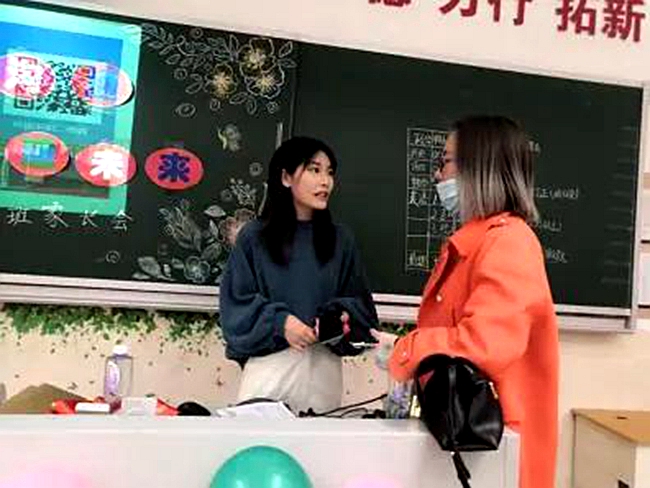 家长会后,老师们针对学生现阶段的表现及需要注意的问题,为家长作一对一答疑。