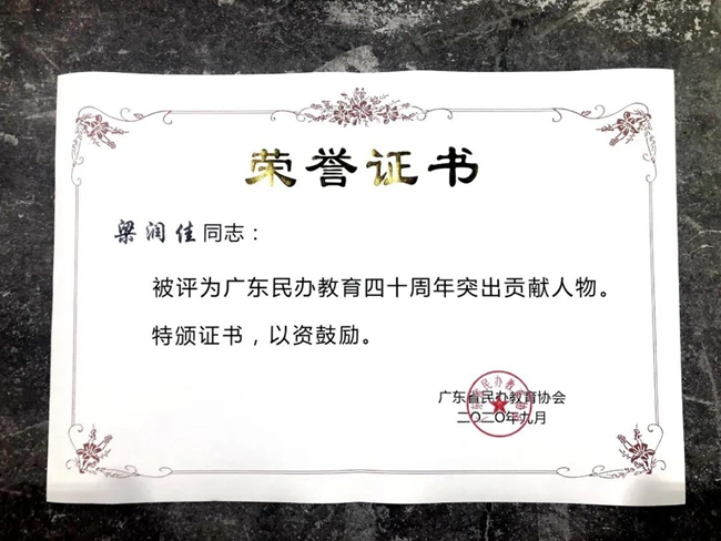 12月11日,广东省民办教育协会年会暨广东民办教育四十周年“突出贡献人物·机构”表彰大会颁奖典礼隆重举行。
