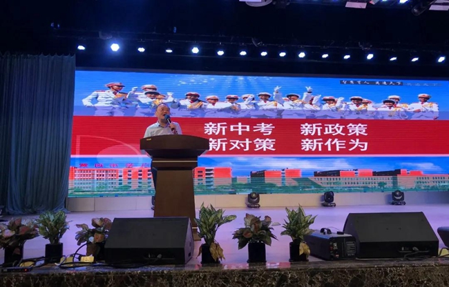 学校主管初中的杨文化副校长、2020届九年级优秀毕业生代表林子琪和戴云鹏同学家长分别从学校、学生、家长的角度作出动员,向家长们发出“面对新中考,认识新政策,制定新对策,誓创新辉煌”的倡议。