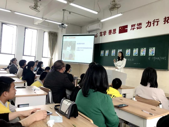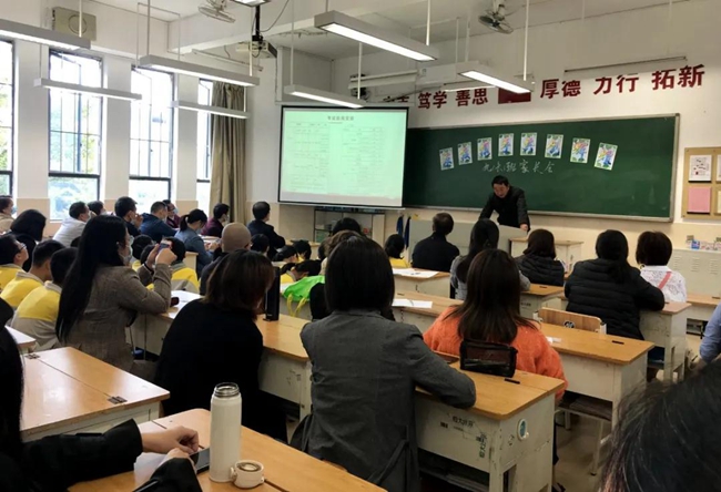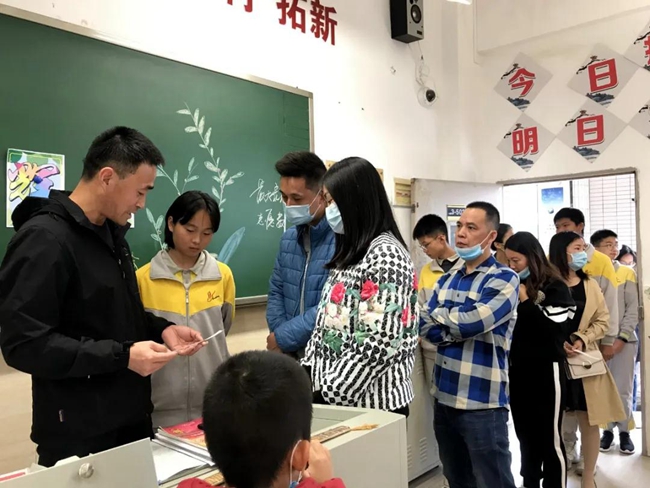 班级教室中,班主任老师联同各科任老师向学生和家长们细致分析班级学科的成绩数据,班主任老师对日常表现优异、各方面进步显著的同学进行表扬,树立学业成绩、常规德育、意志品质、行为习惯、综合素质等诸方面优秀榜样。