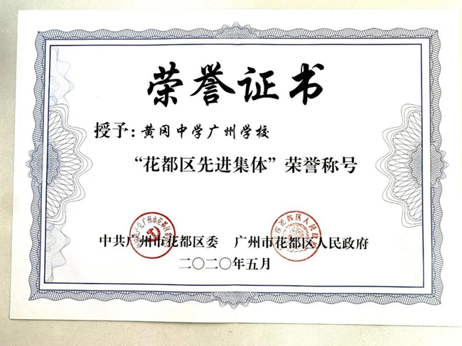 广州市黄广中学继获广州市人民政府官网通过《广州示范性普通高中达72所》一文以“脱颖而出”点名肯定后,于日前在区委礼堂举行的2020年花都区劳动模范、先进工作者和先进集体表彰大会上,再获区委、区政府评为“花都区先进集体”,成为花都区获评为“先进集体”的唯一民办教育机构。