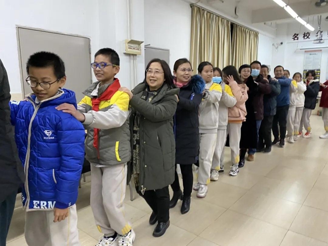 逗趣“口香糖”、加字大比拼、快乐传真等游戏,让领导师生在尽情热闹的互动交流中打破隔阂,也让彼此间在默契配合中大大拉近了心与心的距离。黄广教育集团大小“一家子”其乐融融的场景温暖、感动着现场每一个孩子。