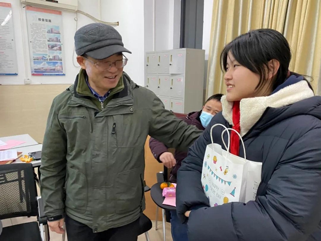 学校领导为孩子们发放按照学生喜好精心准备的小礼物,向每一位绽放笑容的黄广“后浪”予以鼓励。