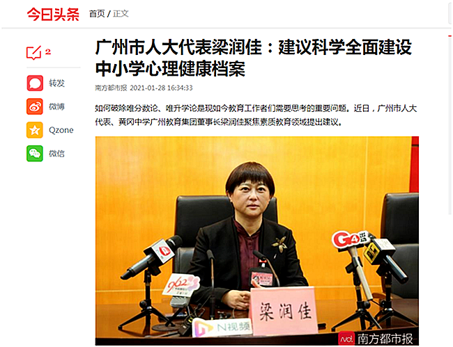 如何破除唯分数论、唯升学论是现如今教育工作者们需要思考的重要问题。近日,广州市人大代表、黄广中学广州教育集团董事长梁润佳聚焦素质教育领域提出建议。