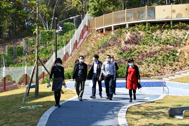 黄广教育集团副董事长&党总支书记游烈峰等陪同李波部长一行察看牛剑校园,先后深入了解了学校20亩无边界森林课程体验区、创客教育基地、多功能室等,重点了解了学校教育教学、疫情防控、党建工作等。