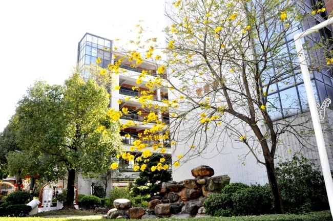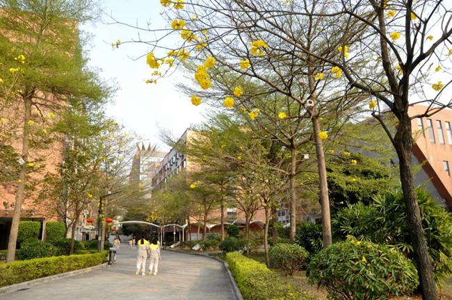 沐浴春光,校园恬静。