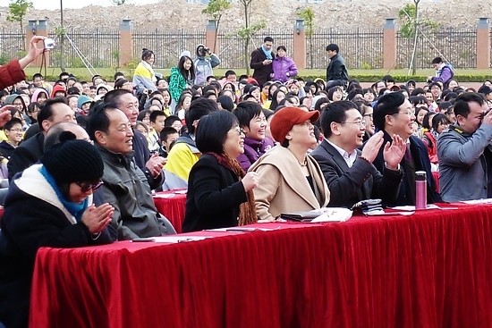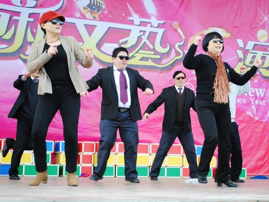 2012年12月30日,广州市黄广中学上午,各班级同学们自主组织、参与的游园活动热闹开展,同学们笑声阵阵,大家沉浸在喜迎新年的欢乐气氛中。 下午2时,迎新年文艺汇演开始,演出高潮迭起,掌声不断。24个节目给全校2000多师生及家长献上了一场精彩绝伦的视听盛宴。 同学们自己编排和演出的节目形式多样、精彩纷呈,既有魅力四射的歌舞,还有悦耳动人的朗诵,更有令人捧腹大笑的小品。其中初二(12)班的歌舞“春满傣乡”专业水准的舞蹈和班主任悠扬的葫芦丝配乐引来现场阵阵惊叹;初一(5)班的同学们年龄虽小、但“舞艺”高强,《大家一起来跳舞》的舞蹈,跳起来整齐而流畅、专业而有趣;高一(3)班的小品《英雄外传》包袱频扔,处处显示90后的幽默,令全场师生笑声不断! 在场的家长纷纷感慨,真的没有想到,黄广学子除了会学习外,还很会玩,很有艺术才华。 学校教师和领导们也不甘示弱,生活部的全体老师表演的精彩快板引来学生们阵阵尖叫;英语老师赵爽那专业级别的歌声使大家倾倒。 最特别的,是学校所有领导和老师、同学们同台表演《江南style》,校领导和老师们幽默地戴上墨镜、上台表演,场上、场下立即齐跳骑马舞,场面十分壮观,呈现一片欢乐的海洋。原来我校的教师不仅会教书,他们还很时尚、关注外界、与学生同乐。 整场文艺汇演体现学生原创性、师生同乐的特点,不仅为广大师生提供了展现才艺的平台,激发了学生学习艺术的兴趣,进一步促进了师生关系的融洽,更是我校以喜闻乐见的方式实施艺术教育、素质教育的有益探索,目的是通过各种活动的举行,挖掘学生的艺术天赋,培养学生不仅善于学习、更全面发展,成为未来需要的优秀人才。