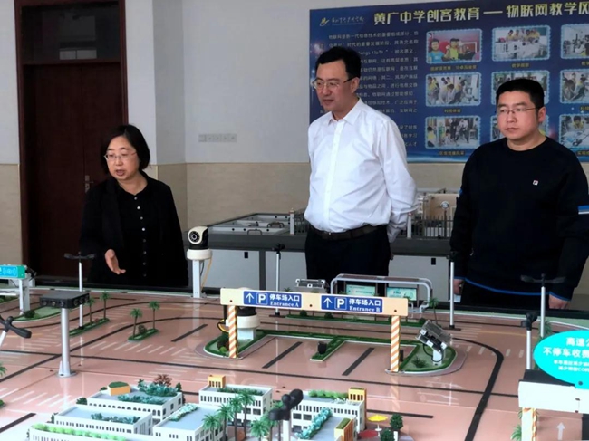 黄广学校范小星执行校长等代表对沙向东书记一行的到来表示热烈欢迎,并陪同来宾们走进陶艺实践专用教室、创客教育基地(3D建模及打印、物联网、智能机器人)、教育成果陈列馆、运动场等核心功能区域,多维度、深层次介绍了黄广“智慧教育”特色文化、素质教育架构体系。