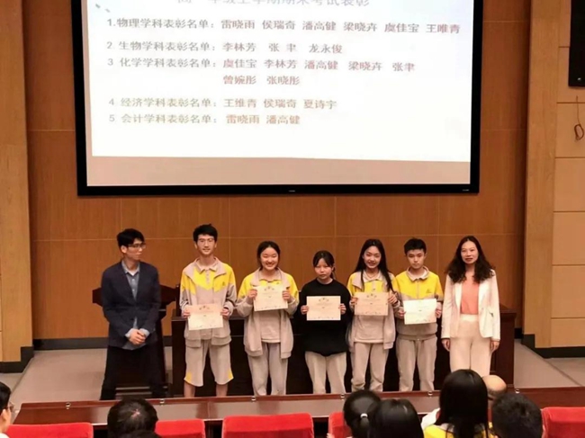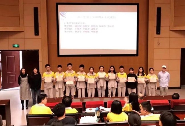 获表彰学生步上讲台,凭勤学奋进的学习态度、扎实的知识基础、稳定的实力表现,收获来自学校的认可与鼓励、感受来自老师和同学们的赞许与肯定,无论是迎难而上的挑战信念、还是勇于拼搏的青春自信,都深深感染了现场每一位师生。