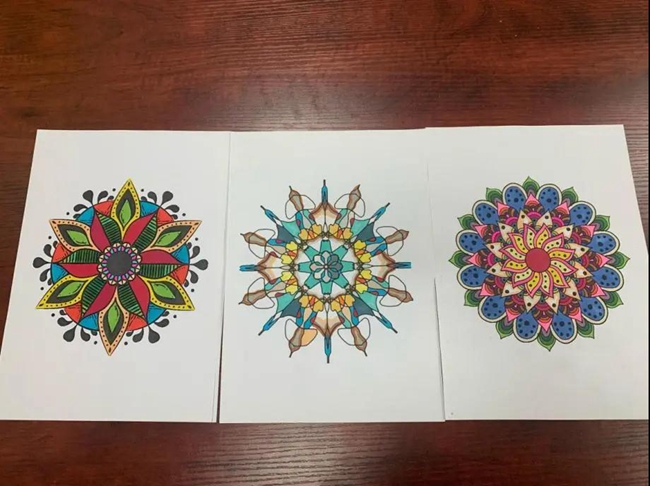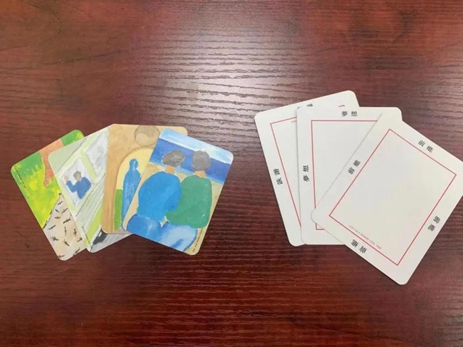 心理咨询室3(同心楼708)一般作为团体心理活动课以及“向日葵”健心协会活动场所,活动包括OH Card牌以及曼陀罗绘画等。